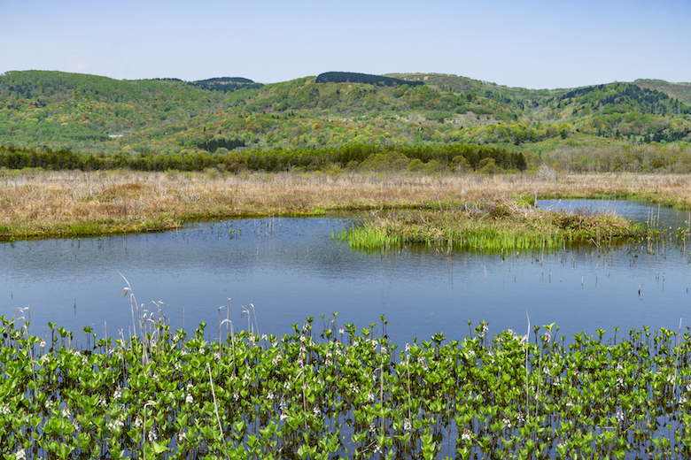 点在する小島群は後楽橋・公魚橋・湖月橋など形も大きさも様々な橋で結ばれていて、その橋も美しい景観を作り出している要素の一つ。散策路の途中ではマイヅルソウやチゴユリ、エゾヤマツツジやスイレンなどが季節ごとに目を楽しませてくれます。