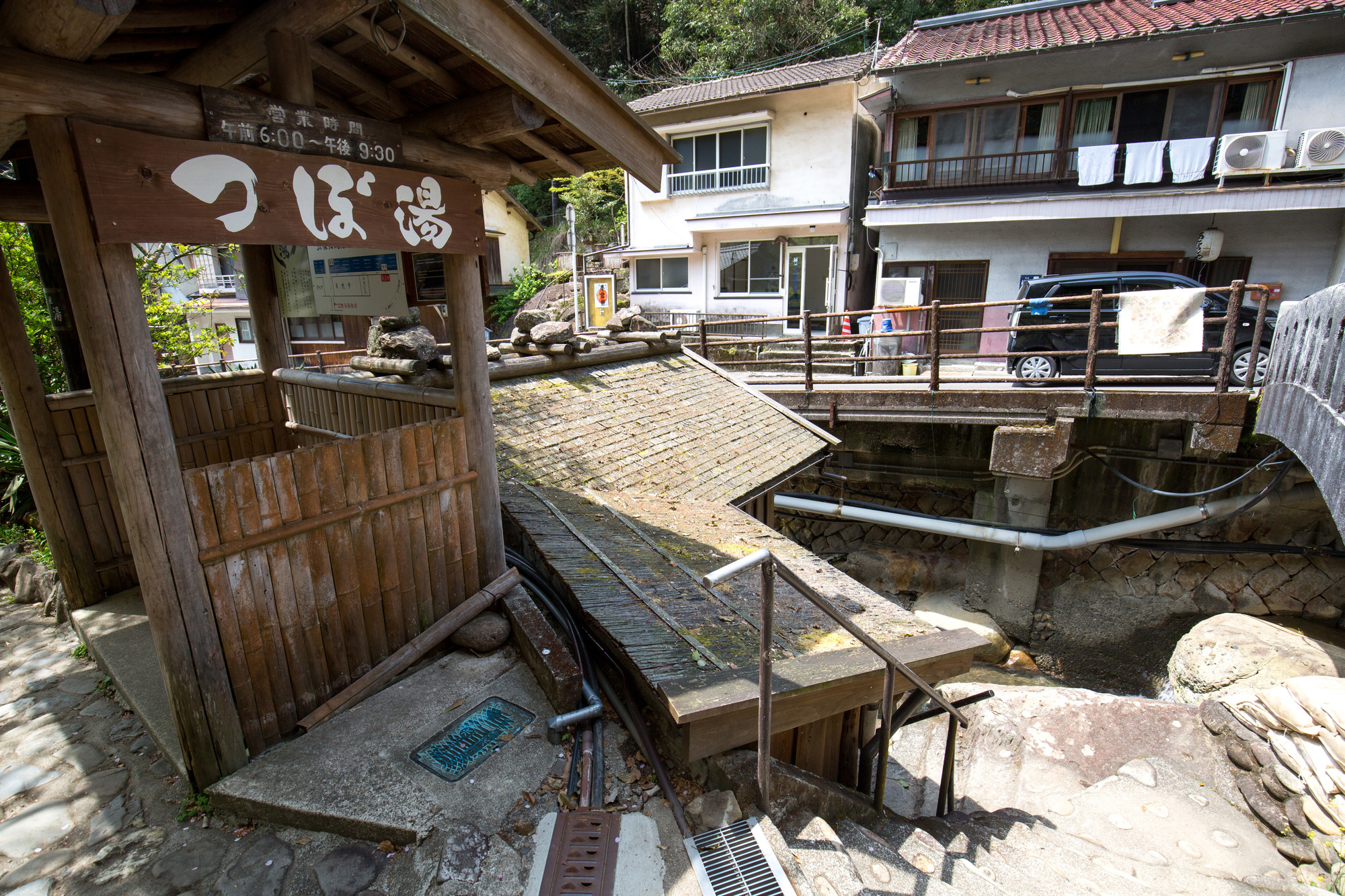 四村川の支流・湯の谷川沿いに15軒ほどの旅館が建ち並び、2ヵ所の共同浴場があります。そのうちのひとつ「つぼ湯」は日本最古の共同浴場といわれ、入浴できる温泉としては初めて世界遺産に登録され、話題を呼びました。川岸の小屋の中の2、3人が入ったら一杯の大きさの岩穴に湧く温泉で、1日に7回も湯の色が変わるといわれる肌が滑らかになる温泉です。